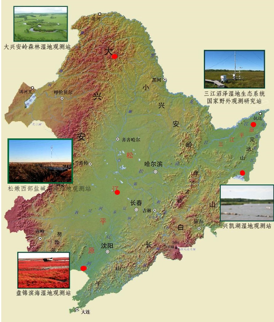 東北地理所構(gòu)建了以中國科學院三江平原沼澤濕地生態(tài)試驗站為核心站的中國科學院東北濕地觀測研究網(wǎng)絡,包括中國科學院大興安嶺森林濕地生態(tài)觀測研究站(寒溫帶)、中國科學院興凱湖濕地生態(tài)觀測研究站(?中溫帶)、中國科學院松嫩平原西部鹽堿濕地生態(tài)研究站(?中溫帶)、中國科學院盤錦雙臺河口濱海濕地生態(tài)觀測研究站(暖溫帶),形成了覆蓋東北地區(qū)主要溫度帶和濕地類型的野外長期定位觀測研究網(wǎng)絡。該平臺以東北地區(qū)濕地生態(tài)系統(tǒng)為主要對象,開展沼澤濕地生態(tài)系統(tǒng)要素和主要生態(tài)過程的長期定位觀測,從不同時空尺度認識人類活動和全球變化影響下不同氣候帶濕地關(guān)鍵生態(tài)過程與服務功能響應及區(qū)域效應–區(qū)域生態(tài)環(huán)境保護,為東北生態(tài)建設及國家濕地保護提供重要的研究平臺與技術(shù)支撐。