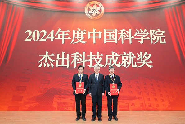 侯建國為獲得2024年度中國科學院杰出科技成就獎個人成就獎的陳立泉院士、陳仙輝院士頒獎