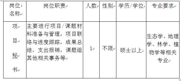 因科研工作需要,中國科學院東北地理與農業生態研究所城市森林與濕地學科組,現招項目聘用人員。 1.招聘崗位及基本條件: