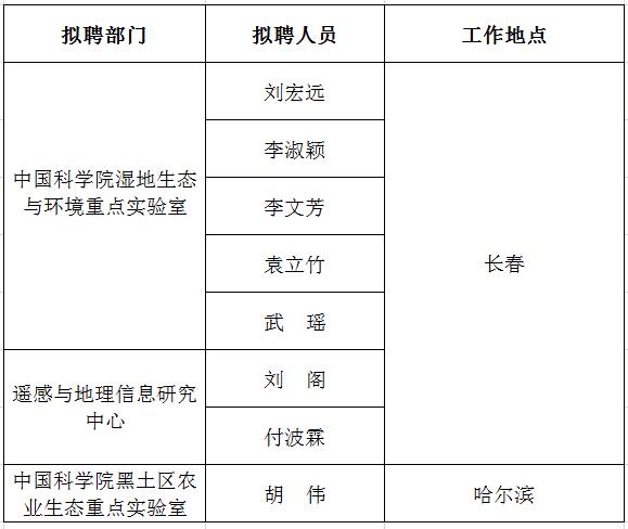 依據(jù)東北地理所公開招聘程序,在公開申報、資格審查、競聘答辯、設(shè)崗招聘委員會考察評議與建議的基礎(chǔ)上,經(jīng)所領(lǐng)導(dǎo)班子集體研究決定,擬聘任劉宏遠等8名同志來所工作,現(xiàn)將各崗位的擬聘人選予以公示: