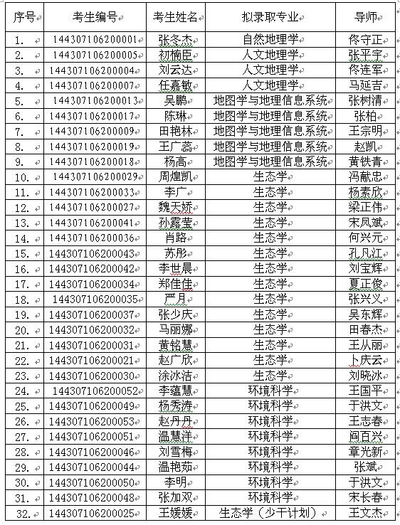 按照《教育部辦公廳關于做好2017年招收攻讀博士學位研究生工作的通知》(教學廳〔2017〕2號)精神和《中國科學院大學關于做好2017年秋季入學博士研究生錄取工作的通知》(校發招字〔2017〕42號)精神,本著“德智體全面衡量、擇優錄取、保證質量、寧缺毋濫”和“公平、公正、公開”的原則,東北地理所組織了2017年博士研究生入學考試。本次博士研究生入學考試方式為“申請-審核”制,對考生的德、智、體等方面和綜合素質及能力進行了全面的考核。經東北地理所招生工作領導小組研究決定,現將2017年博士研究生擬錄取名單公示如下: