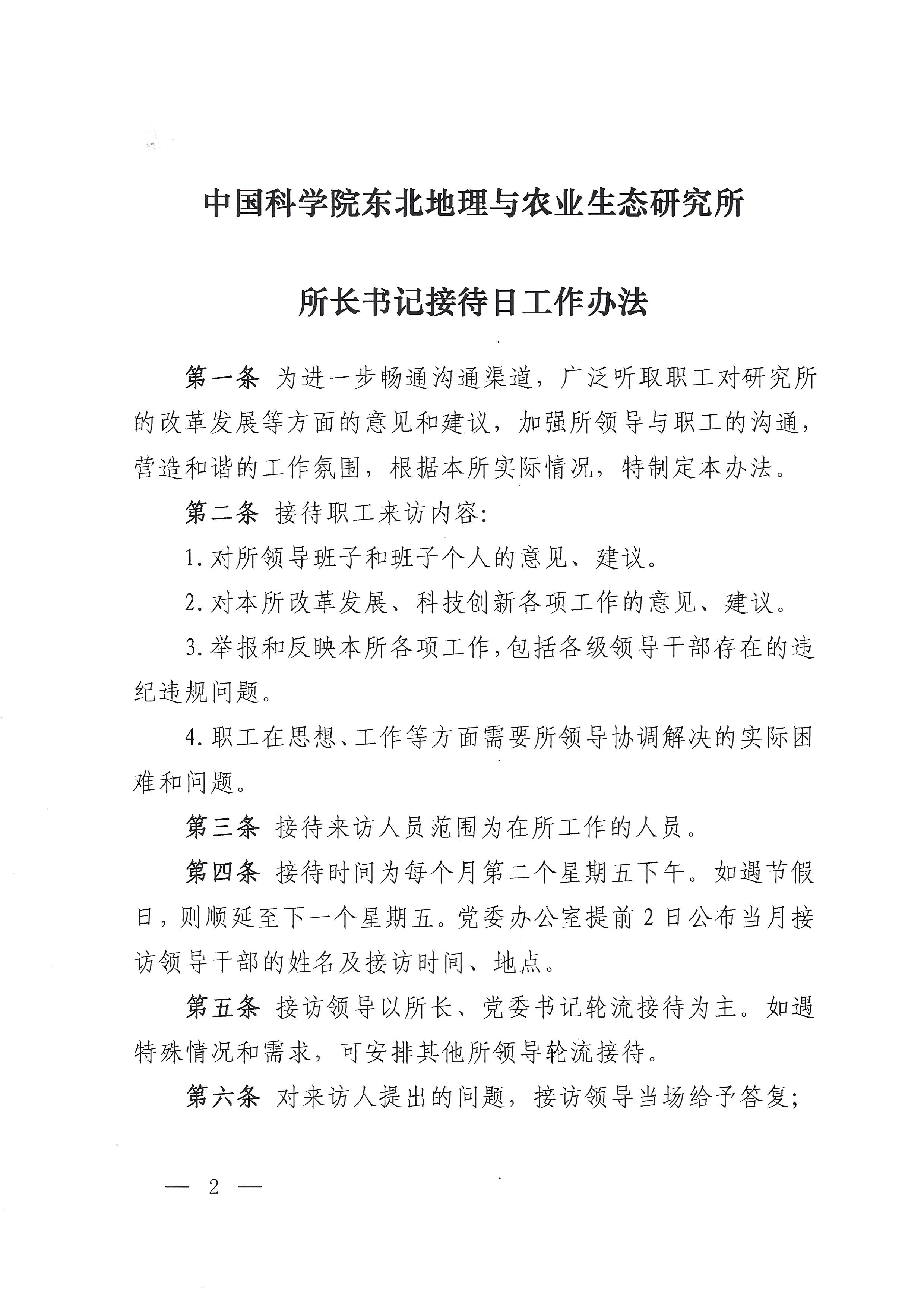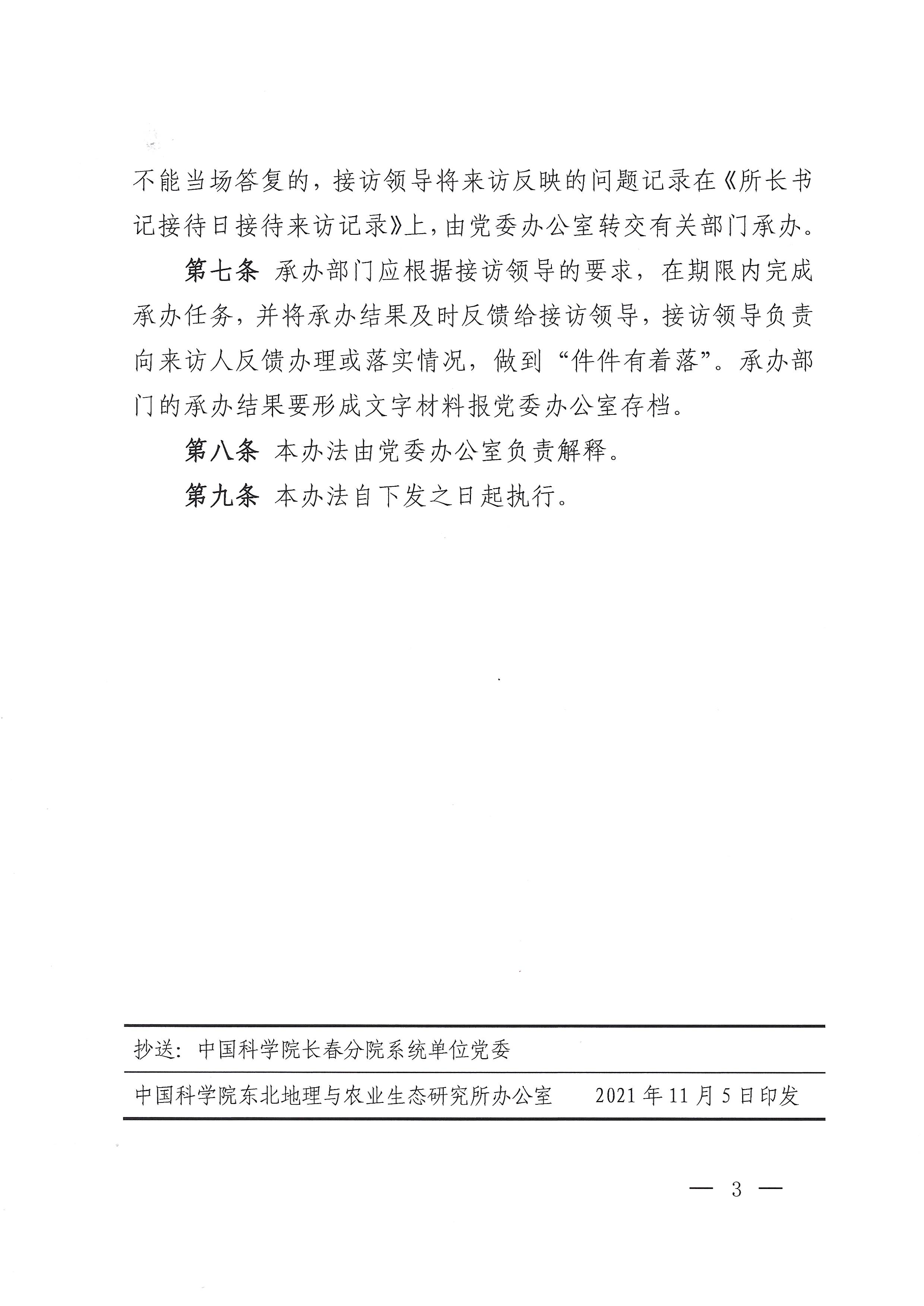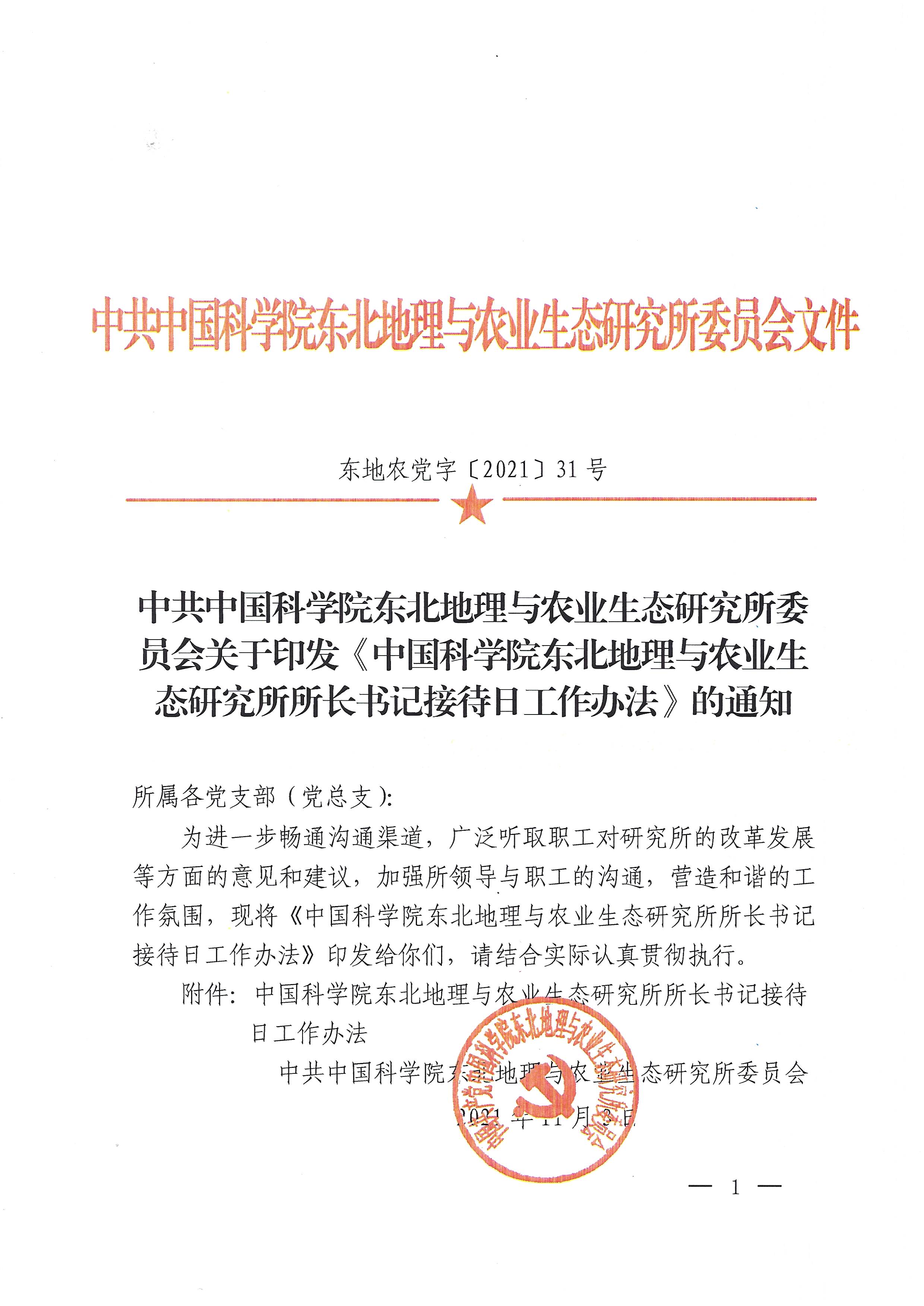 東地農黨字【2021】31號文件-中共中國科學院東北地理與農業生態研究所委員會關于印發所長書記接待日工作辦法的通知