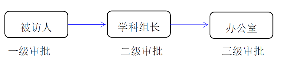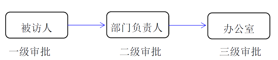 3)提交訪問申請(qǐng)后,被訪人進(jìn)行一級(jí)審批;部門負(fù)責(zé)人/學(xué)科組長(zhǎng)(或者指定代理人)進(jìn)行二級(jí)審批,管理部門負(fù)責(zé)人進(jìn)行三級(jí)審批(視疫情形勢(shì)、工作需要等決定是否啟用)。