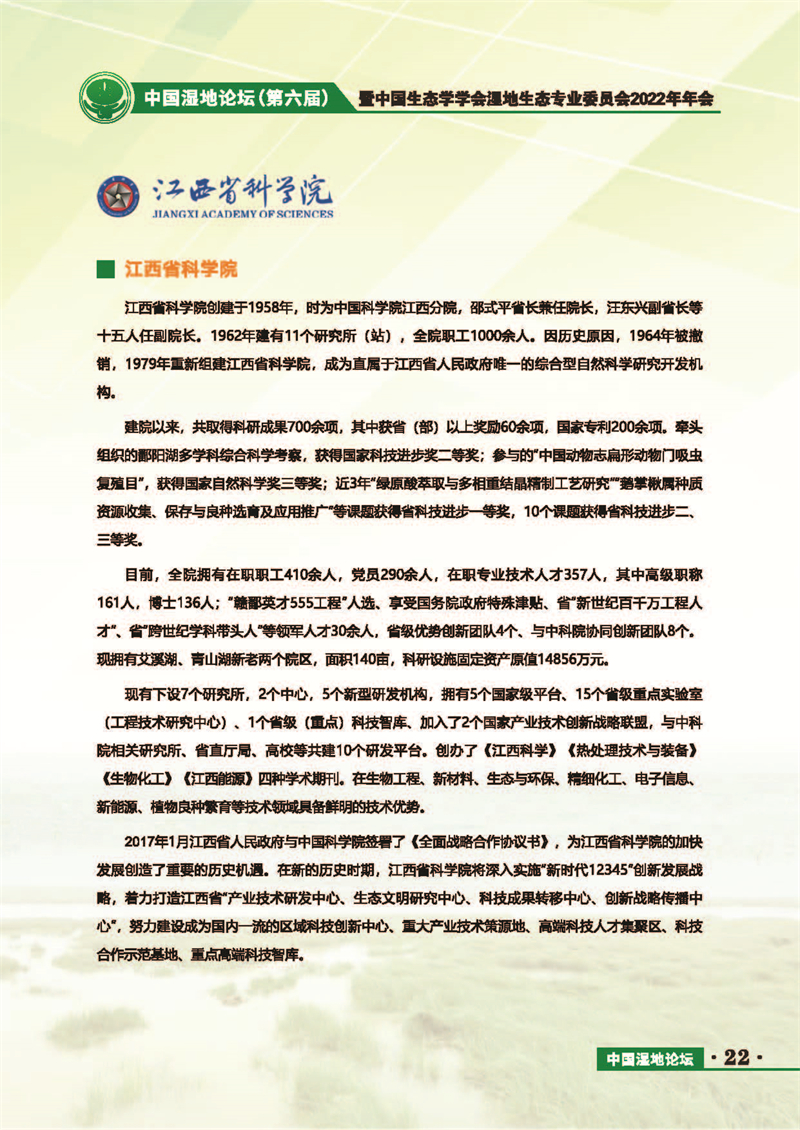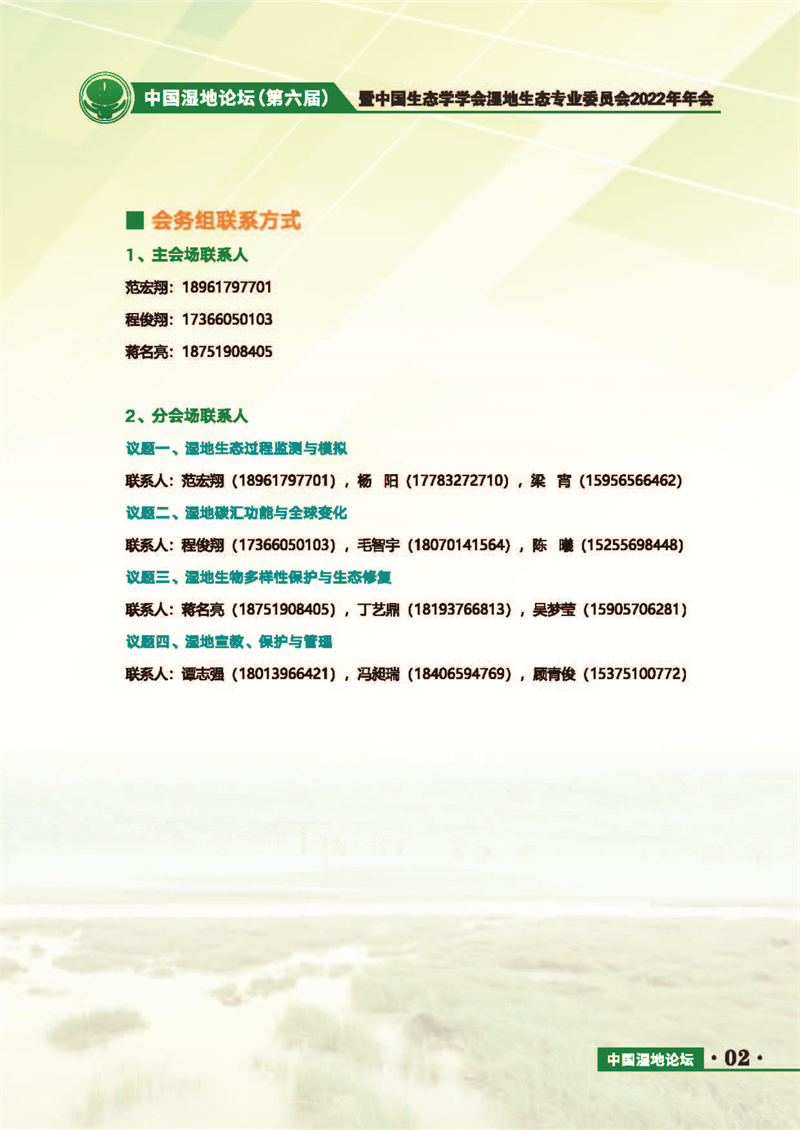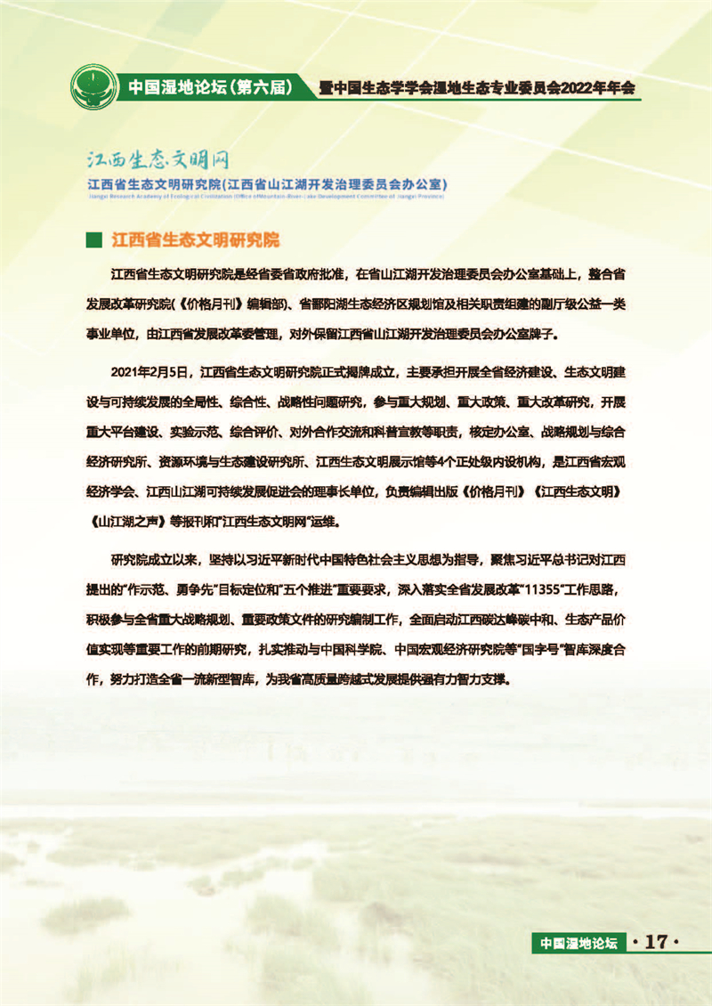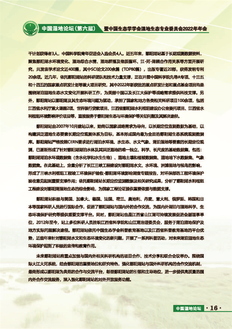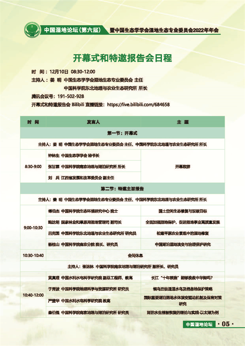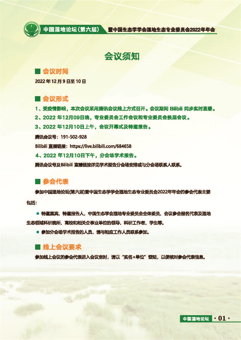 中國濕地論壇(第六屆)暨中國生態(tài)學學會濕地生態(tài)專業(yè)委員會2022年年會 會議手冊