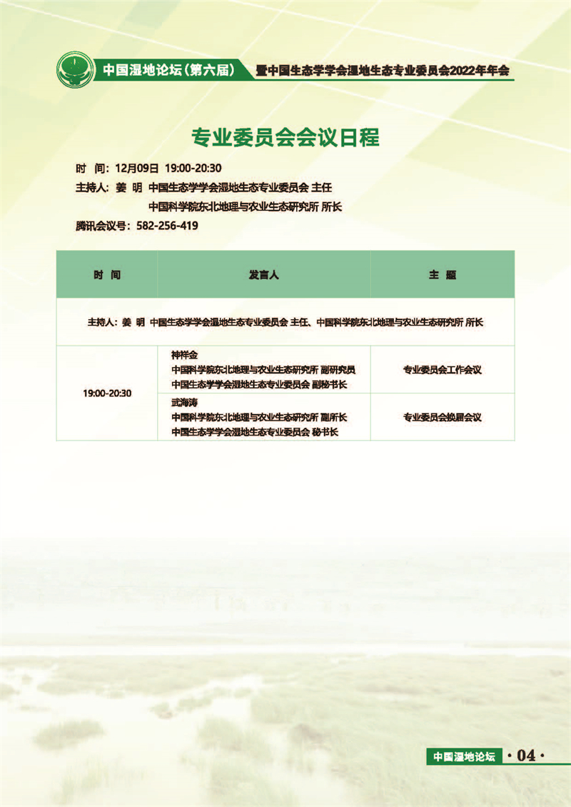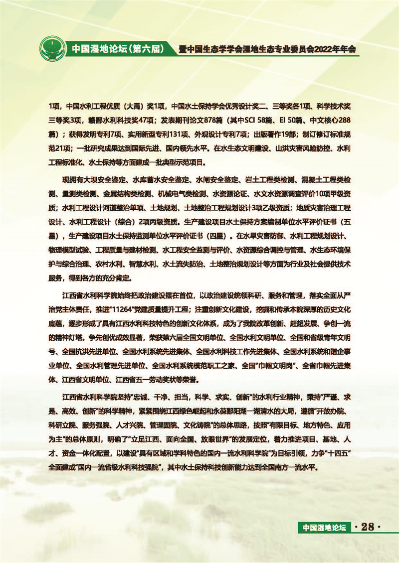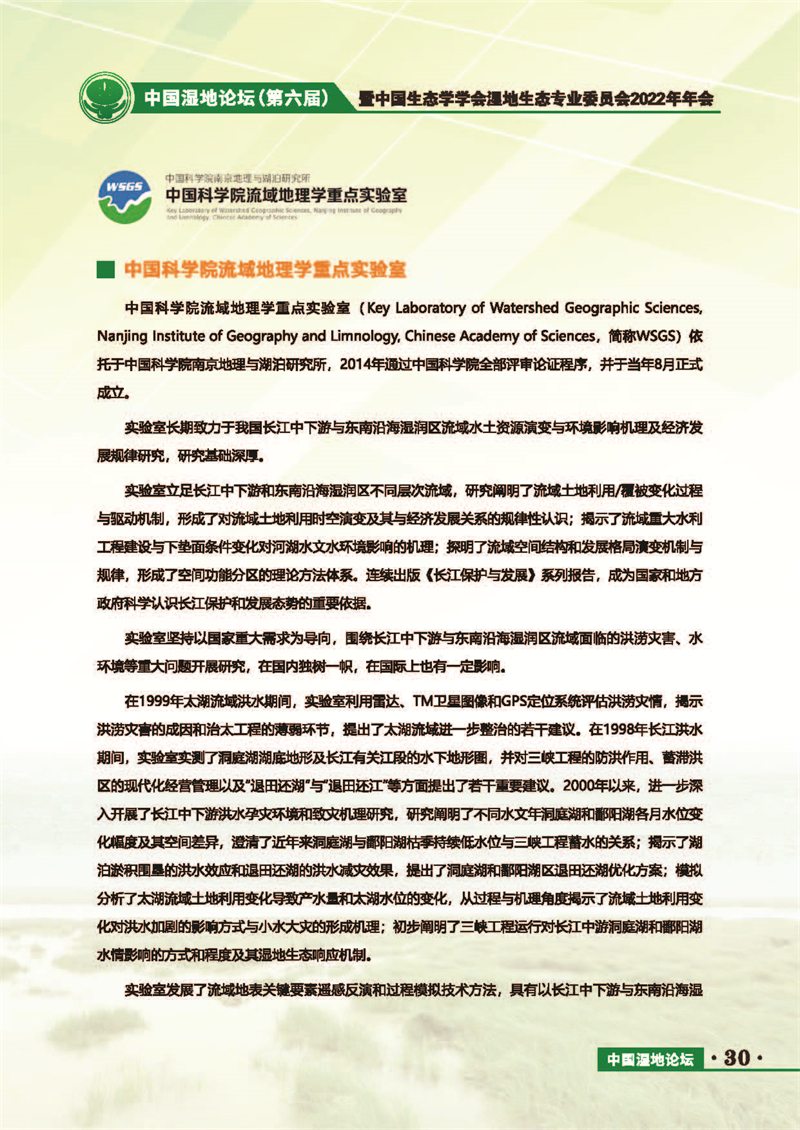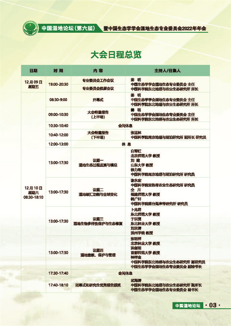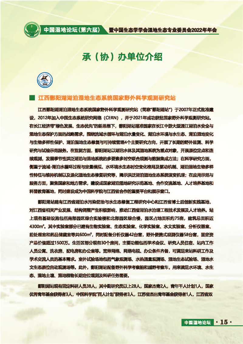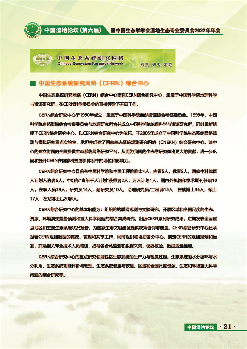 中國濕地論壇(第六屆)暨中國生態(tài)學學會濕地生態(tài)專業(yè)委員會2022年年會 會議手冊