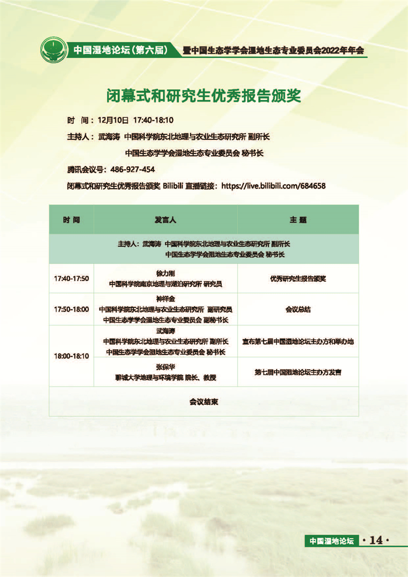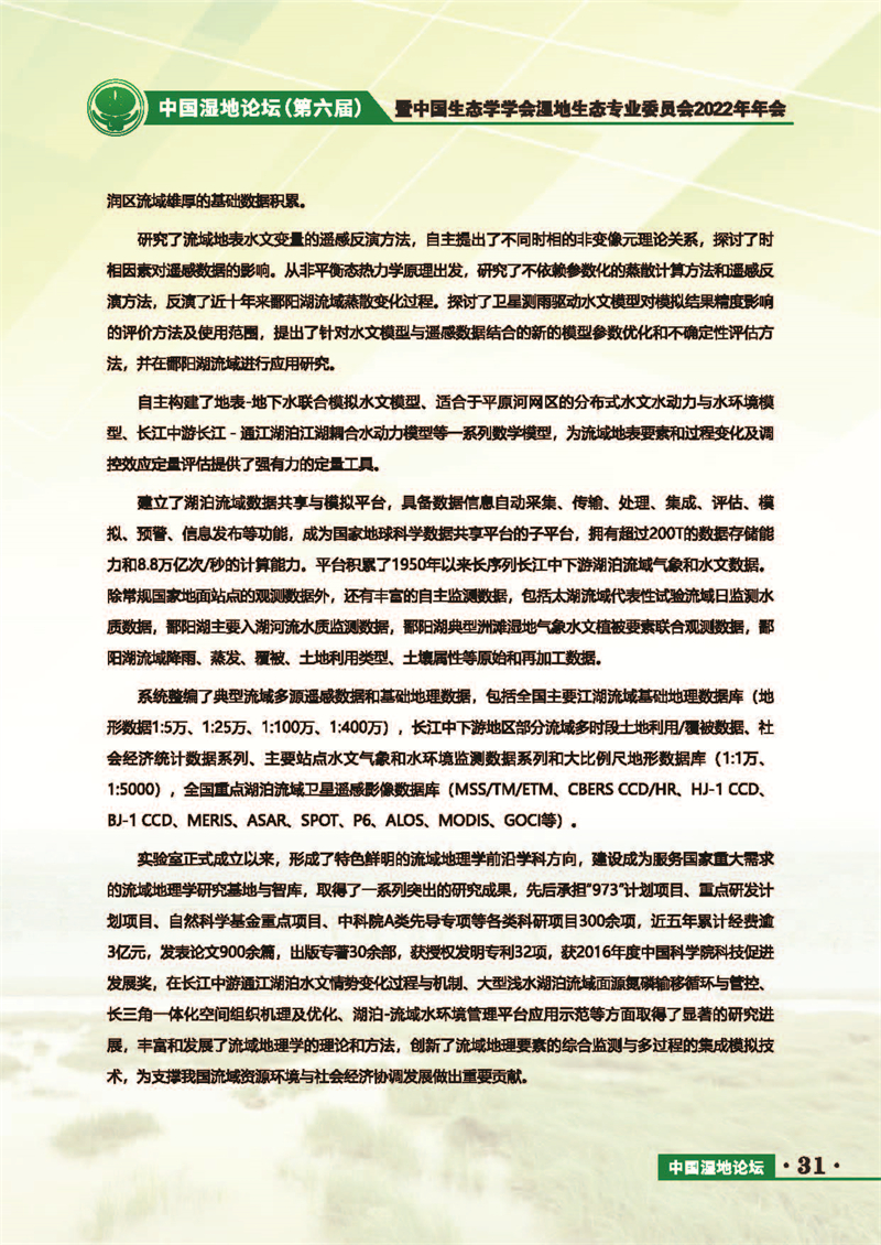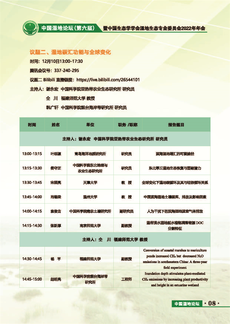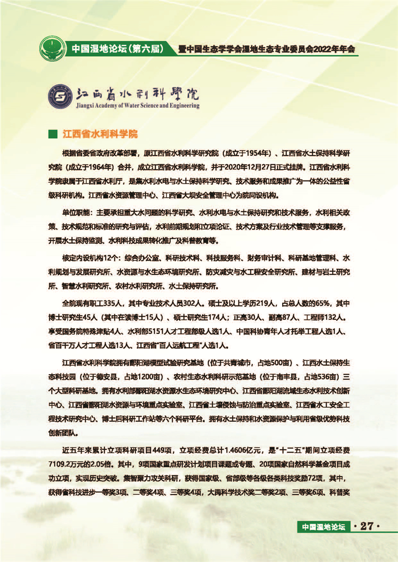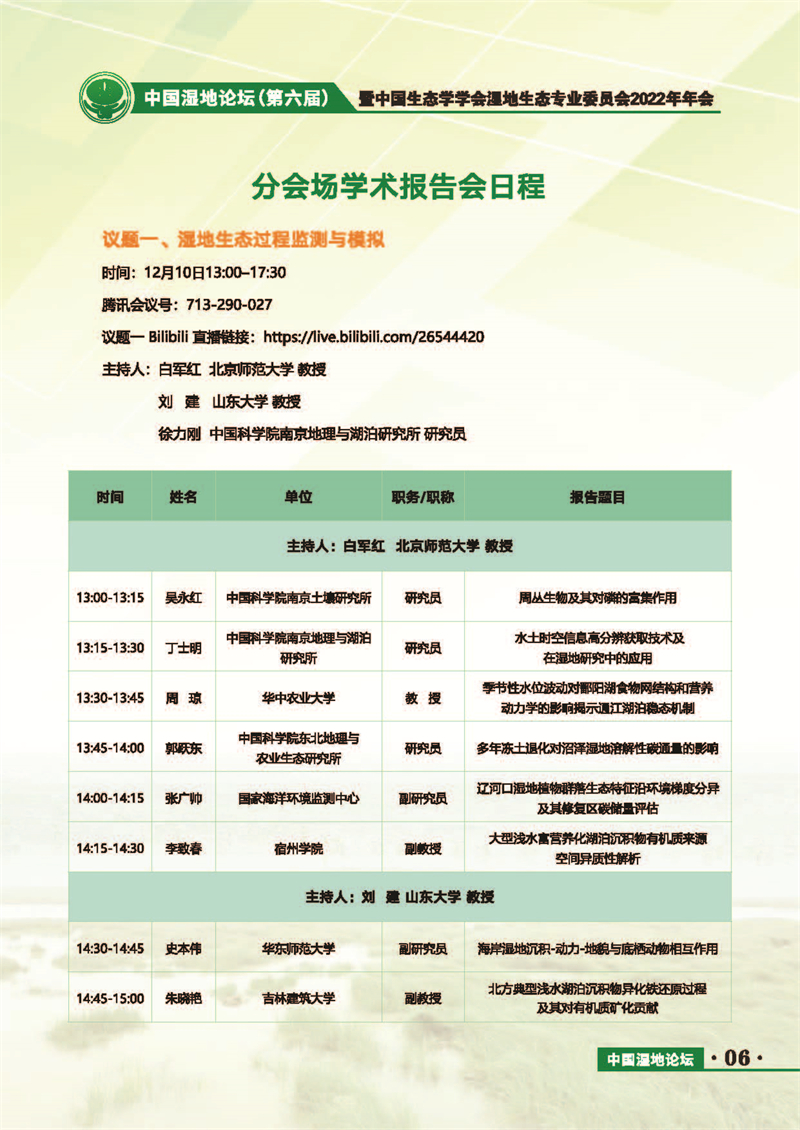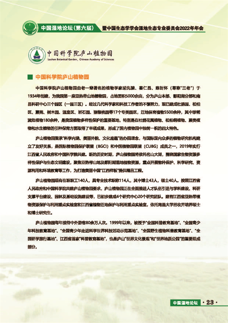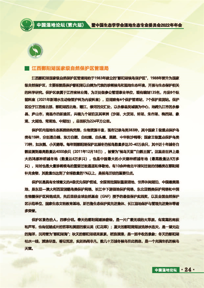 中國濕地論壇(第六屆)暨中國生態(tài)學學會濕地生態(tài)專業(yè)委員會2022年年會 會議手冊