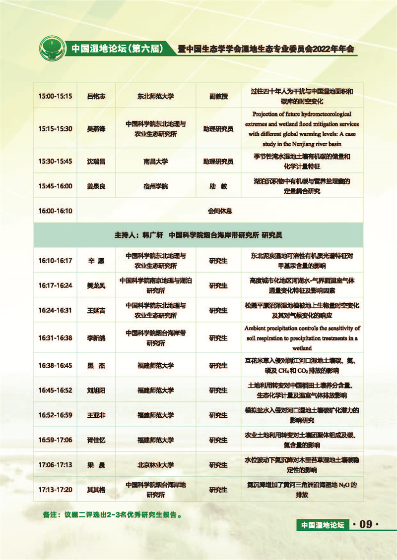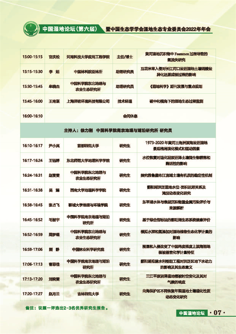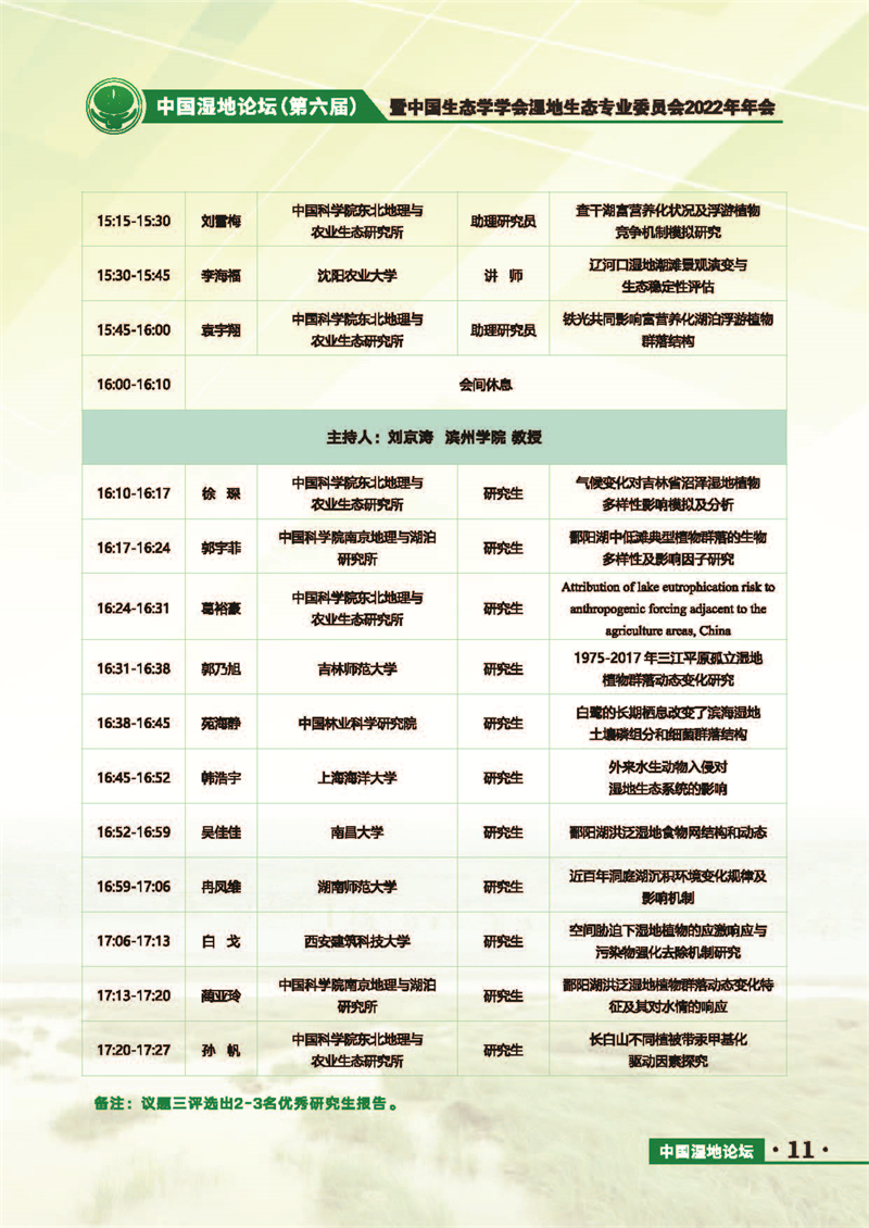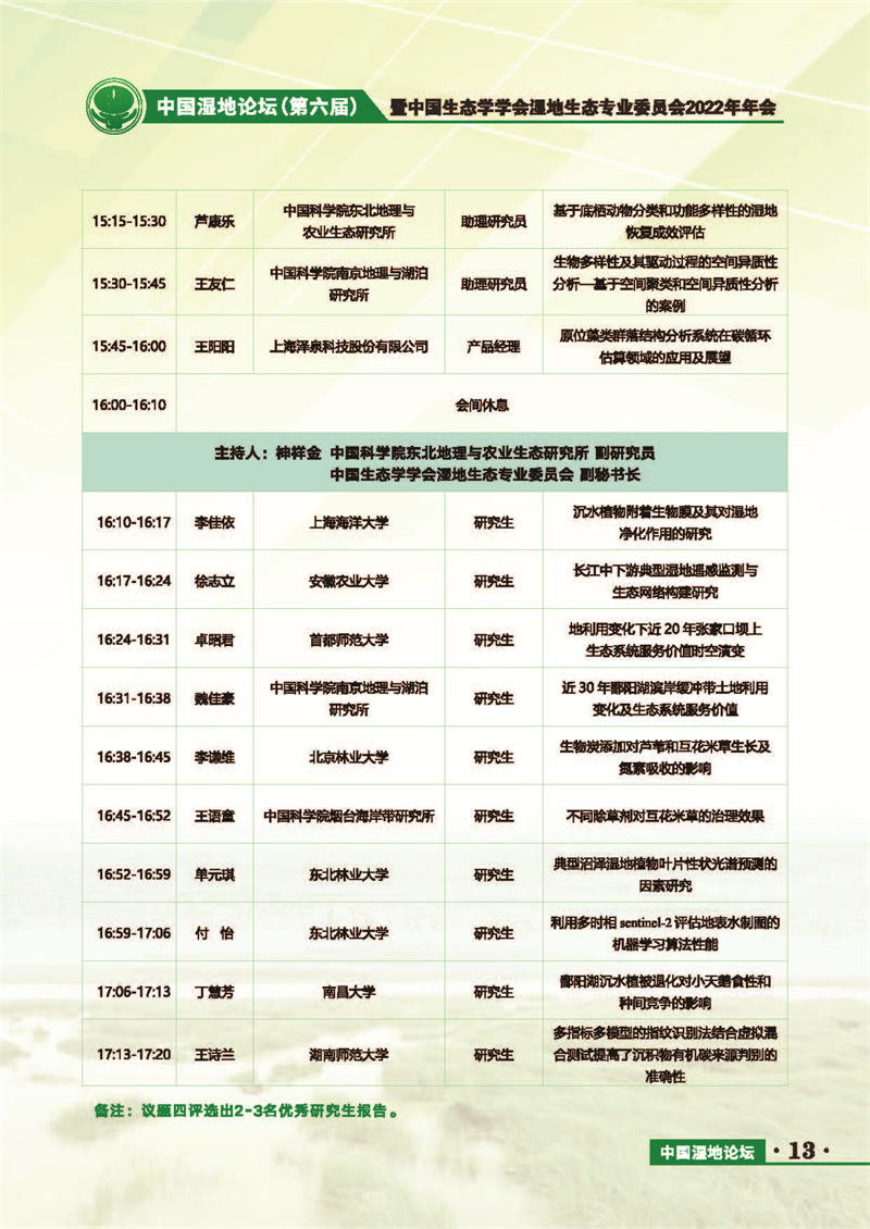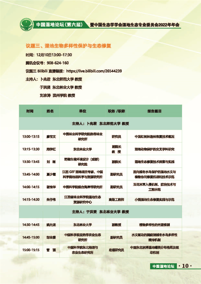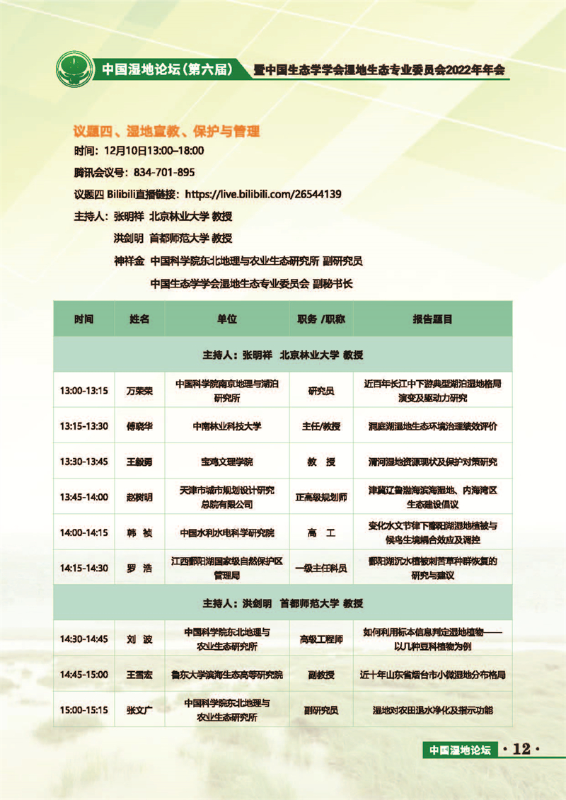 中國濕地論壇(第六屆)暨中國生態(tài)學學會濕地生態(tài)專業(yè)委員會2022年年會 會議手冊