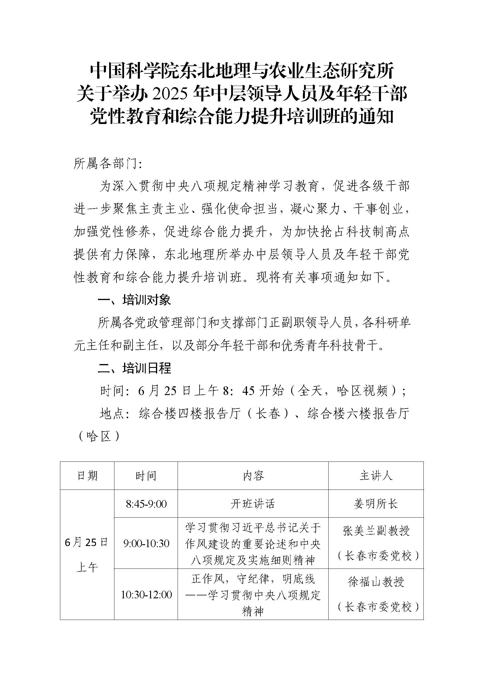 中國科學院東北地理與農業生態研究所關于舉辦2025年中層領導人員及年輕干部黨性教育和綜合能力提升培訓班的通知