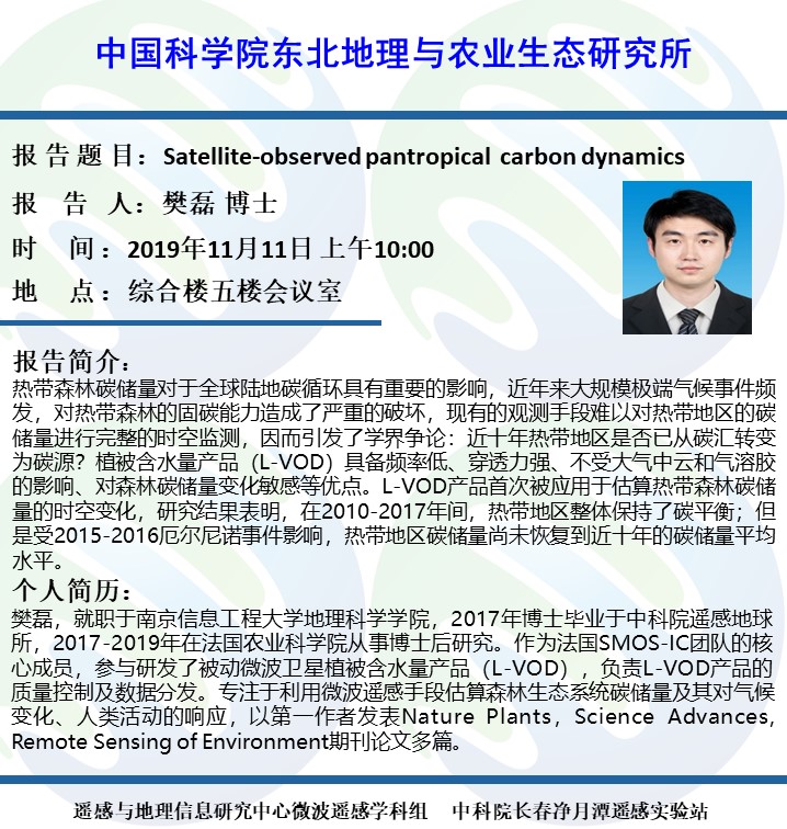 Satellite-observed pantropical carbon dynamics-樊磊 博士
