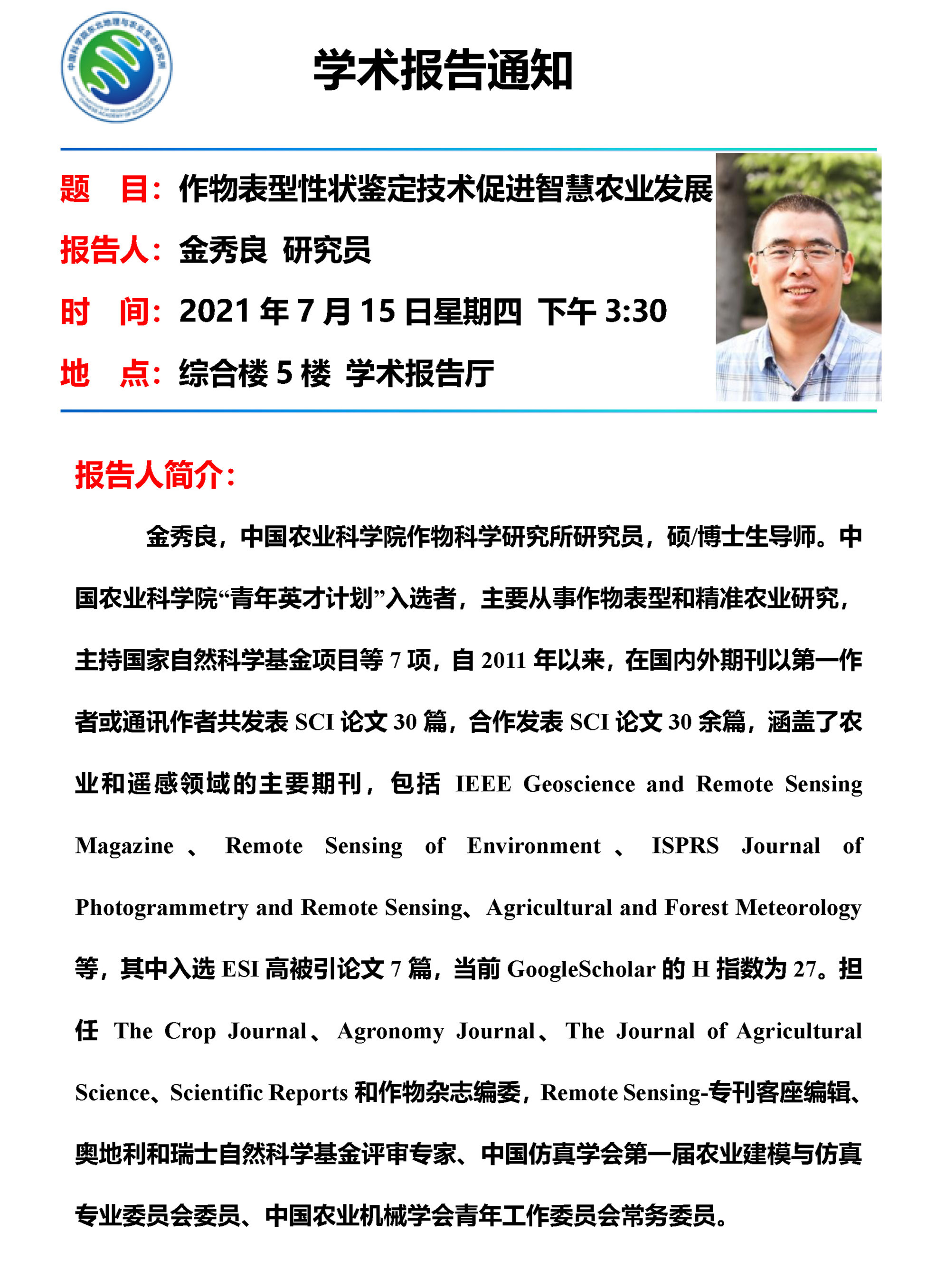 作物表型性狀鑒定技術(shù)促進(jìn)智慧農(nóng)業(yè)發(fā)展-金秀良 研究員
