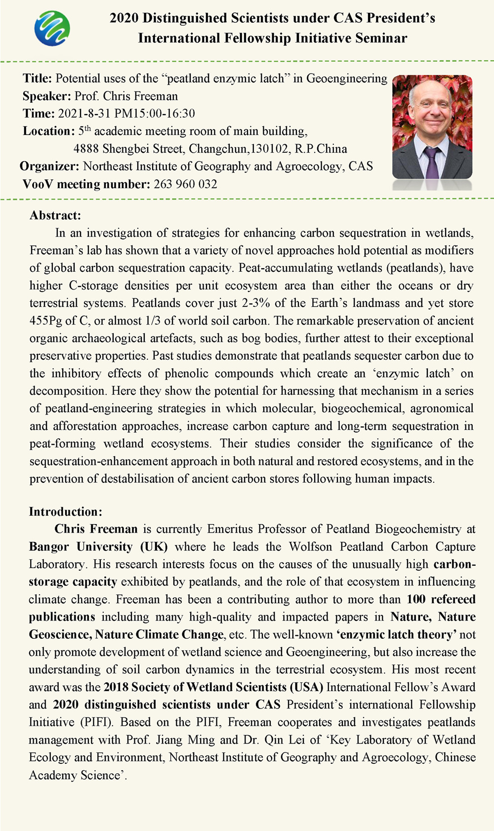 Potential uses of the “peatland enzymic latch” in Geoengineering-Prof. Chris Freeman