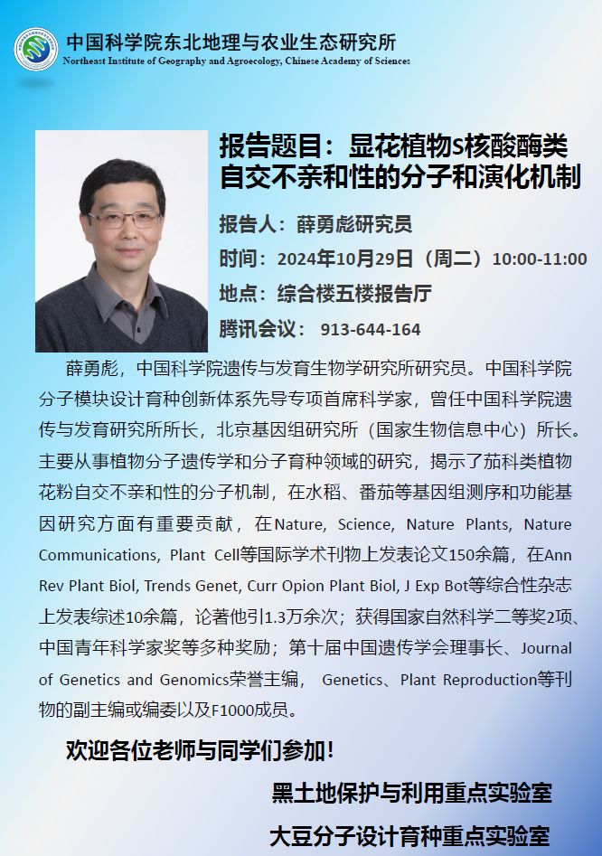 顯花植物s核酸酶類自交不親和性的分子和演化機制-薛勇彪 研究員