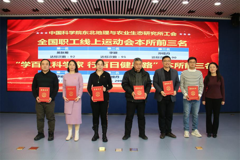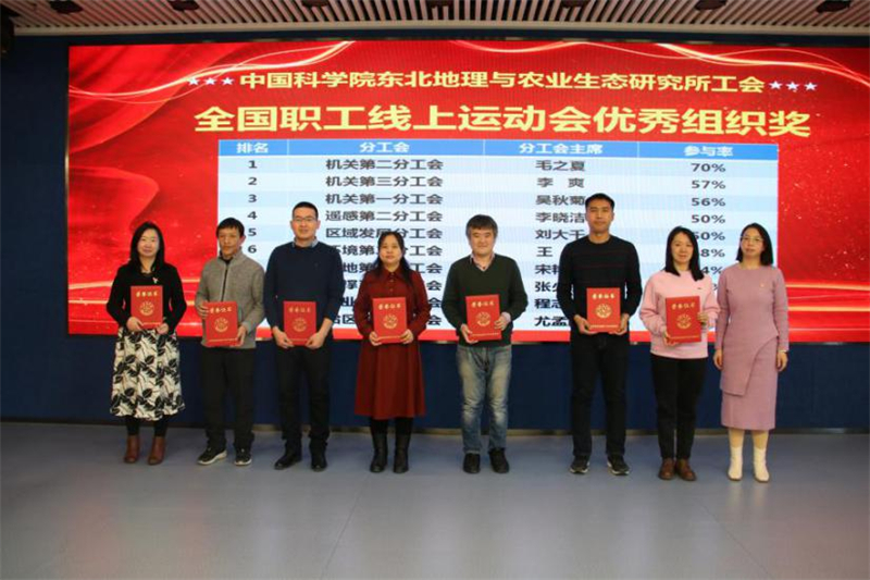 此次活動還表彰了參加全國職工線上運動會和中科院“學百位科學家 行百日健身路”本所排名前三名的工會會員及獲得參與獎代表,王宗明、張嬛為獲獎者頒發(fā)證書。