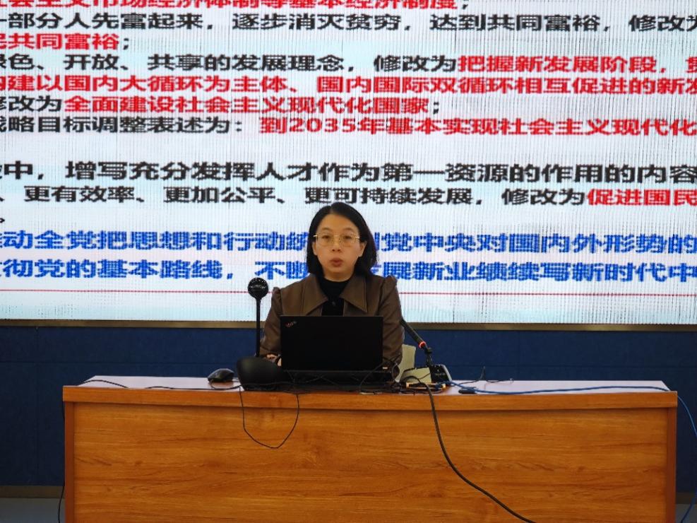 首先,李穎從“推動(dòng)中華民族偉大復(fù)興號(hào)巨輪乘風(fēng)破浪、揚(yáng)帆遠(yuǎn)航”與“深刻領(lǐng)會(huì)二十大黨章修正案的重大意義與重要內(nèi)容”兩部分內(nèi)容為全體黨員闡述了黨的二十大的重要?dú)v史意義。李穎強(qiáng)調(diào),黨的二十大報(bào)告對(duì)習(xí)近平新時(shí)代中國(guó)特色社會(huì)主義思想的科學(xué)內(nèi)涵和歷史定位作了充實(shí)完善,蘊(yùn)含著黨的十九大以來黨的理論創(chuàng)新、實(shí)踐創(chuàng)新、制度創(chuàng)新成果,充分體現(xiàn)了馬克思主義中國(guó)化和時(shí)代化的最新成果,充分彰顯了黨章作為黨的根本大法的政治綱領(lǐng)性、思想指引性、時(shí)代引領(lǐng)性,對(duì)統(tǒng)一全黨意志和行動(dòng),深入推進(jìn)新時(shí)代黨的建設(shè)新的偉大工程具有十分重大的意義。李穎指出,全體研究生要深入學(xué)習(xí)黨的二十大精神,為加快實(shí)現(xiàn)高水平科技自立自強(qiáng)貢獻(xiàn)智慧和力量。